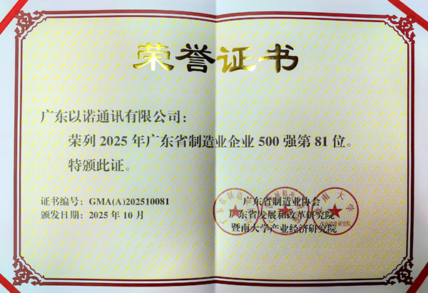 近日,在“2025年廣東省制造業(yè)500強企業(yè)峰會”上,福日電子成員企業(yè)以諾通訊憑借堅實的產(chǎn)業(yè)基礎(chǔ)與穩(wěn)健增長的業(yè)績表現(xiàn),成功入選“2025年廣東省制造業(yè)企業(yè)500強”,位列第81位,較去年提升14位,展現(xiàn)出公司在高質(zhì)量發(fā)展道路上的強勁勢頭與日益突出的行業(yè)影響力。